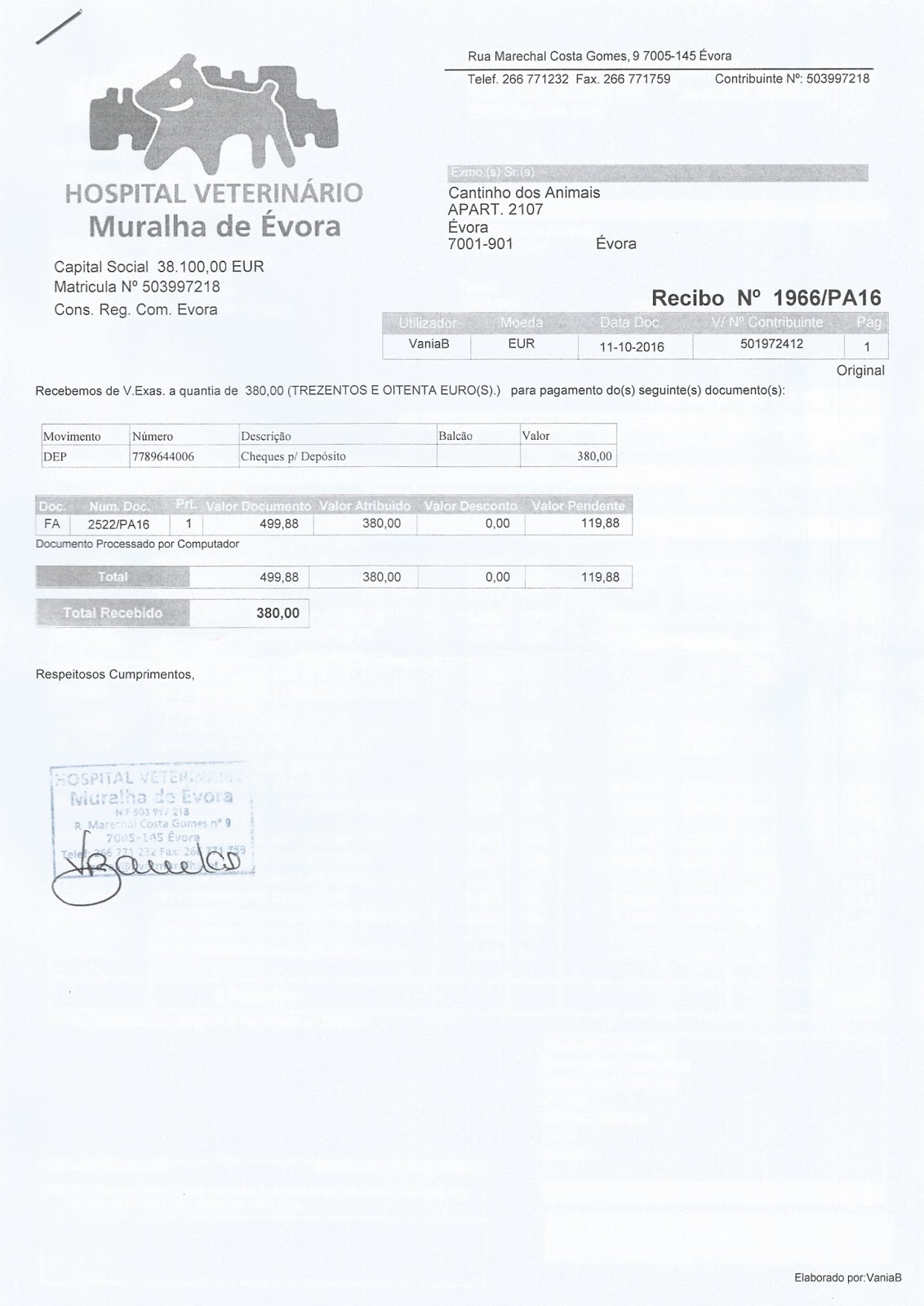 O valor angariado permitiu-nos liquidar na totalidade a conta do nosso querido Sting, que é já uma estrela no céu dos bichos...